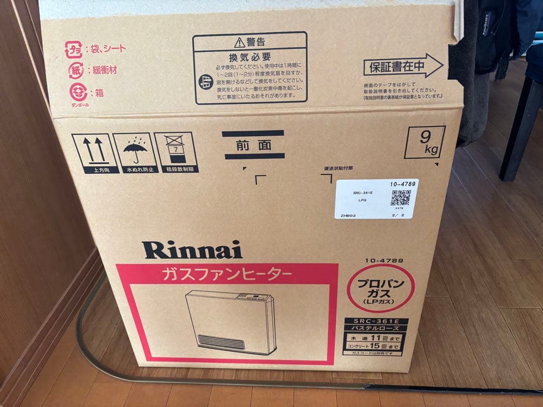 リンナイ Rinnai ガスファンヒーター ファンヒーター \rRC-S4002E 都市ガス ガスホース3m付き\r\r3シーズンほど使用しました。\rガスホースも写真にあるもの(3m)をお付けしますので、到着次第すぐに使用できると思います。\r\r色はピンクゴールドです。\r都市ガスのショールームで購入しました。\r\r暖房能力が高く、スイッチを入れてからすぐに部屋が暖かくなります。\r操作が分かりやすいことに加えて、スリムな本体のため場所を選ばずに設置でき、とても重宝していましたが、引っ越しに伴い出品いたします。\r元箱へ入れた後、佐川急便/日本郵便 または 佐川急便/日本郵便にてお送りします。\r\r\r以下、商品概要です。\r◆室温に合わせて快適さを保ち省エネに貢献する「気くばりエコ機能」\r◆お部屋をもっとすばやく暖める「急速暖房機能」\r◆必要な所だけムダなく暖房「スポット暖房モード」\r◆おそうじの時に取りはずしが簡単「ワンタッチクリップ」のエアフィルター\r\r【仕様】\r・暖房のめやす:木造/11畳まで、コンクリート造/15畳まで\r・サイズ:高さ440×幅440×奥行150(脚部207)mm\r・質量:6.7kg\r・ガス消費量:4.07kW(3,500kcal/h)\r・消費電力:18W\r・運転音:40dB(A)\r・カラー:ピンクゴールド